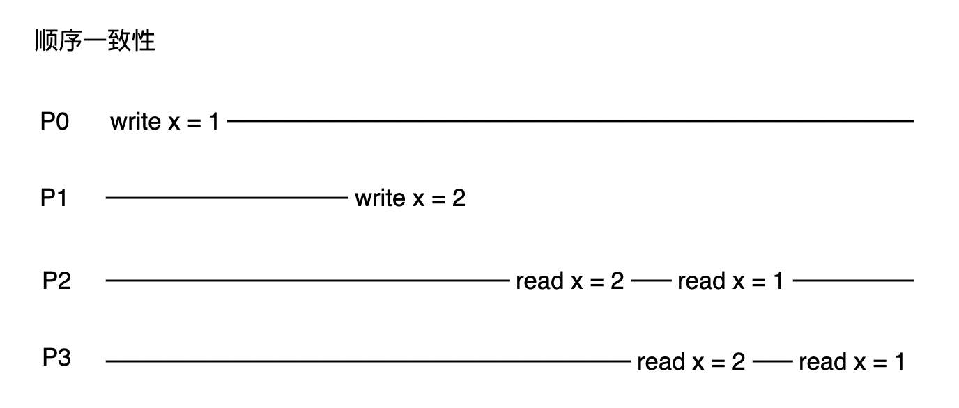 通过对一致性模型的学习,你可以通过读写操作序列,分别举出线性一致性、顺序一致性、因果一致性和最终一致性的例子吗?