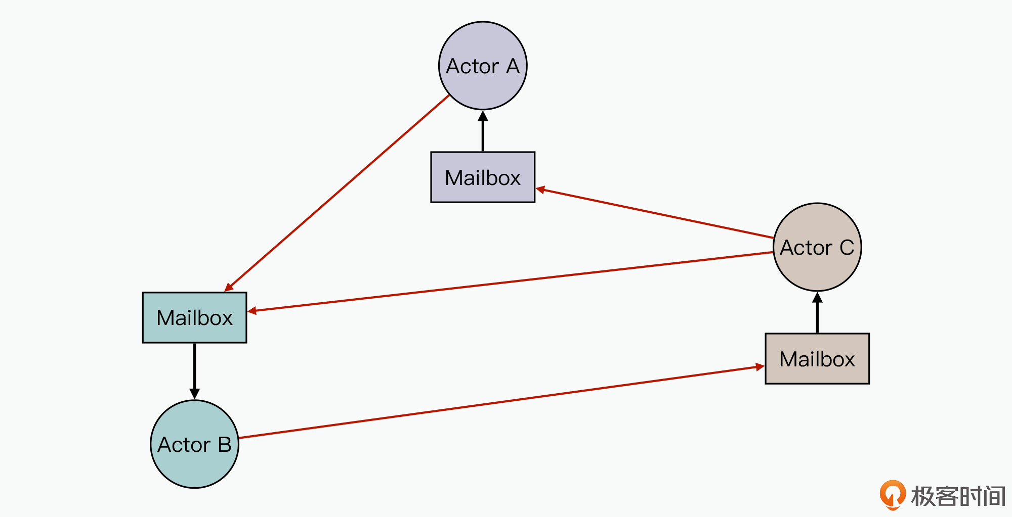 所以,你在实际的业务开发中要注意,如果在使用Actor时,没有利用好Actor轻量级的特性,开发出来的Actor承载的业务逻辑太多,导致Actor的任务粒度过大,那么就很难发挥出Actor的最佳性能表现。