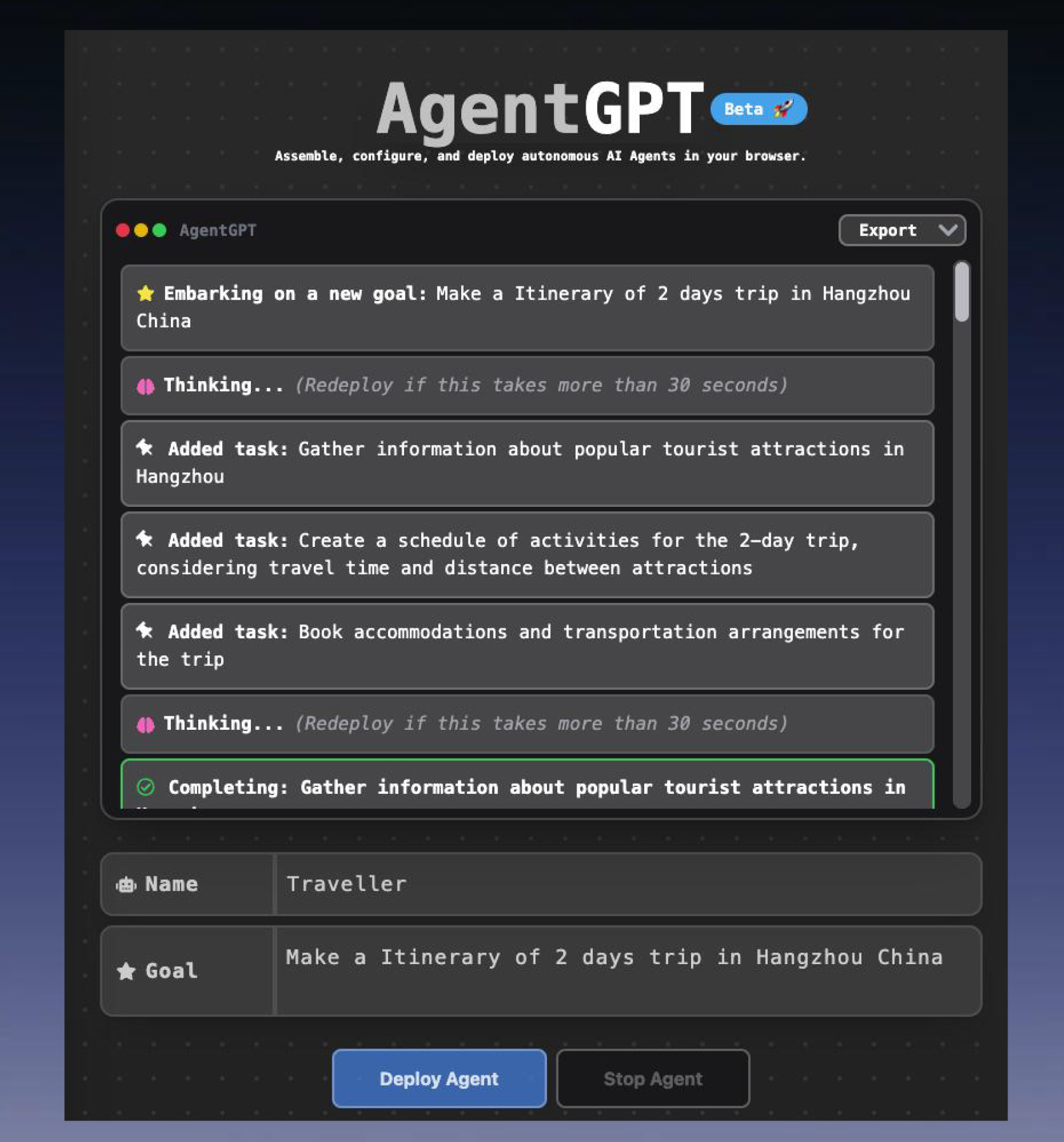 你可以对比上节课中 ReAct 那张图解释程序的输出,在课后的留言区说说这两者之间有哪些联系。感兴趣的同学课后还可以使用 AgentGPT来体验一下相关概念的商业产品。