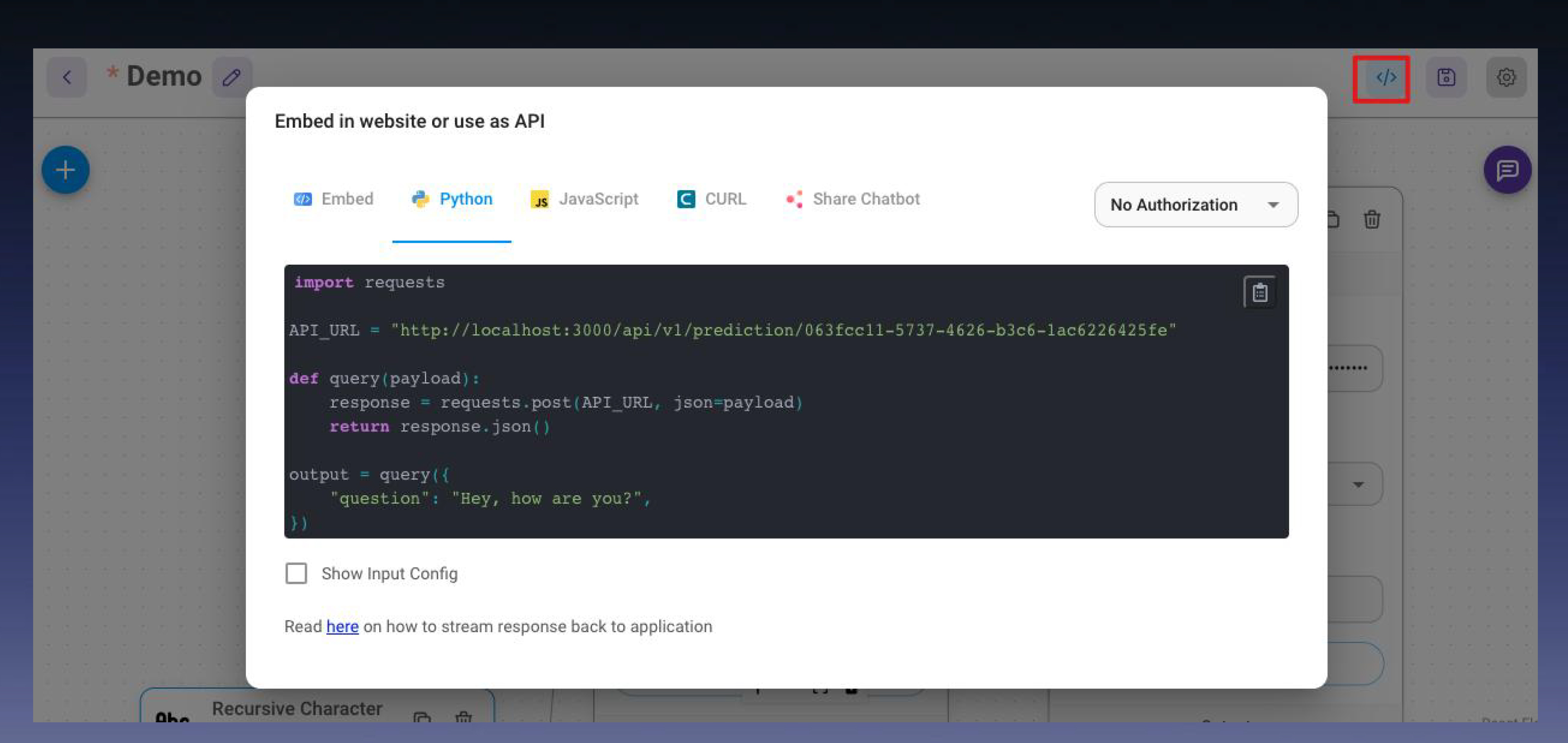 通常,你需要将这个对话应用接入到团队所使用的IM系统。这里你只需要点击下图的位置,就可以得到API。对于各种IM的Hook调用的实现作为你的课后作业。