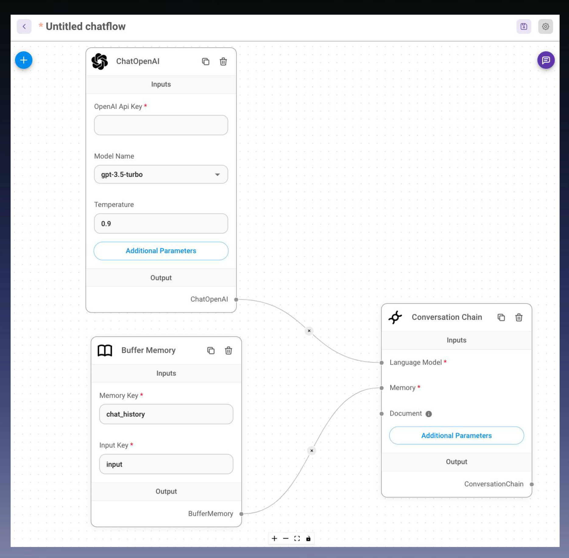 接下来,我们继续使用Flowise实现这个项目,你只需要依次加入以下组件。