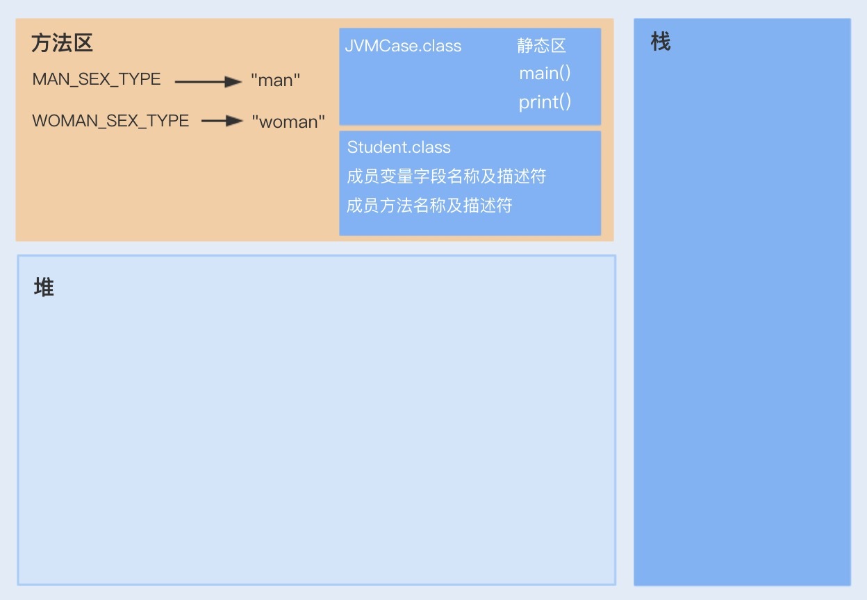 看到这里,相信你对JVM内存模型已经有个充分的了解了。接下来,我们通过一个案例来了解下代码和对象是如何分配存储的,Java代码又是如何在JVM中运行的。