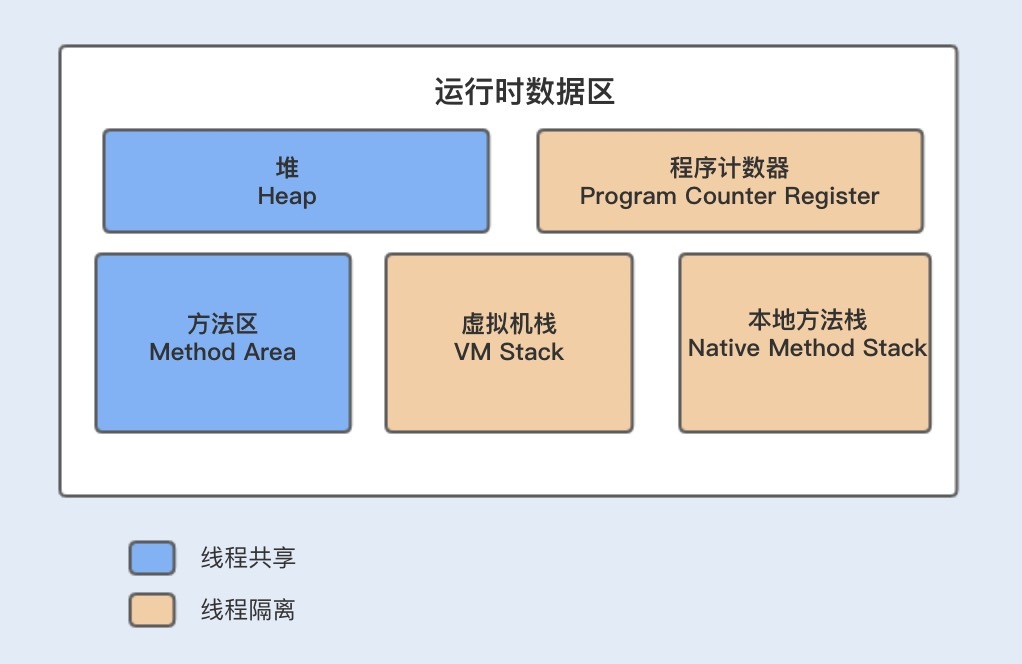 我们先通过一张JVM内存模型图,来熟悉下其具体设计。在Java中,JVM内存模型主要分为堆、程序计数器、方法区、虚拟机栈和本地方法栈。