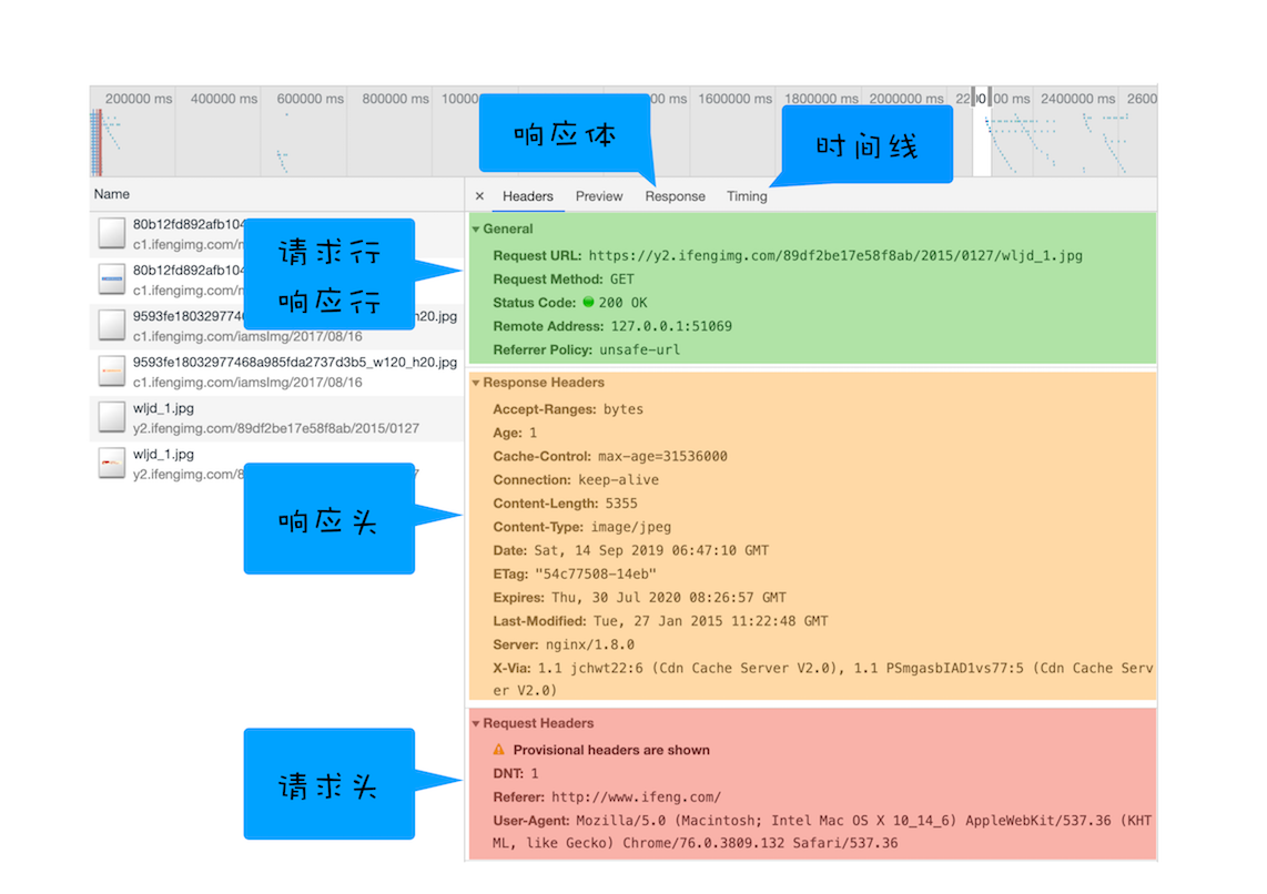 了解了每个资源的详细请求信息之后,我们再来分析单个资源请求时间线,这就涉及具体的HTTP请求流程了。