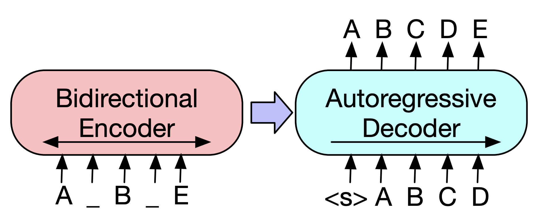 BART模型就是将Encoder和Decoder结合在一起的一种sequence-to-sequence结构,它的主要结构如下图所示。
