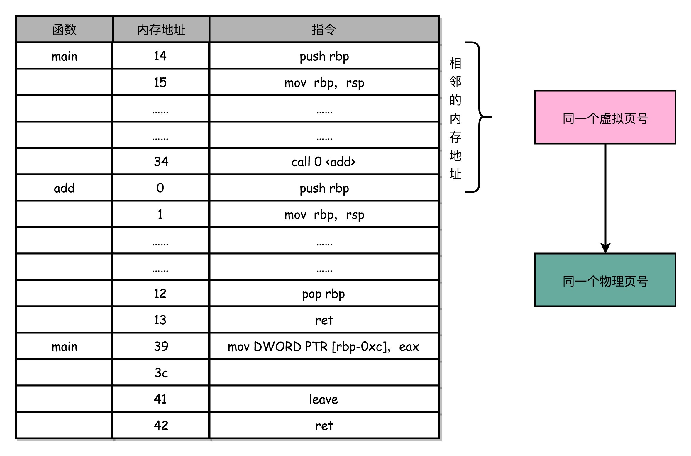 程序所需要使用的指令,都顺序存放在虚拟内存里面。我们执行的指令,也是一条条顺序执行下去的。也就是说,我们对于指令地址的访问,存在前面几讲所说的“空间局部性”和“时间局部性”,而需要访问的数据也是一样的。我们连续执行了5条指令。因为内存地址都是连续的,所以这5条指令通常都在同一个“虚拟页”里。