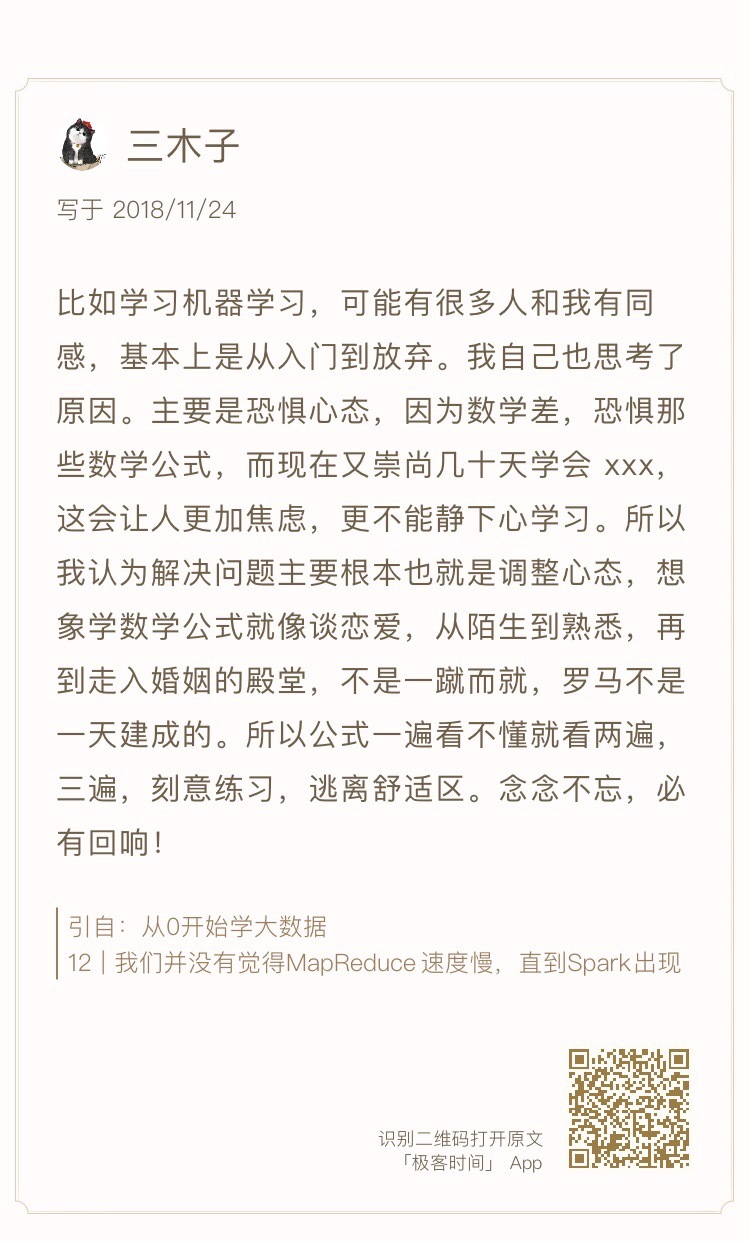 最后还是老规矩,我精选了三木子、Lambda、hunterlodge、老男孩这几位同学的留言,贴在今天的文稿里分享给你,希望同学们的思考也能对你有所启发。