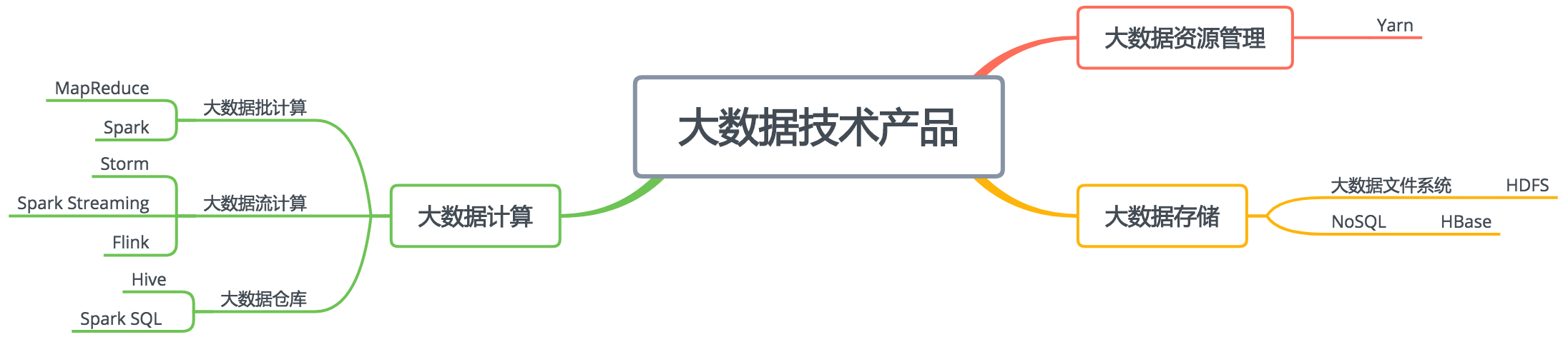 MapReduce、Spark、Hive、Spark SQL这些技术主要用来解决离线大数据的计算,也就是针对历史数据进行计算分析,比如针对一天的历史数据计算,一天的数据是一批数据,所以也叫批处理计算。而Storm、Spark Streaming、Flink这类的大数据技术是针对实时的数据进行计算,比如摄像头实时采集的数据、实时的订单数据等,数据实时流动进来,所以也叫流处理大数据技术。