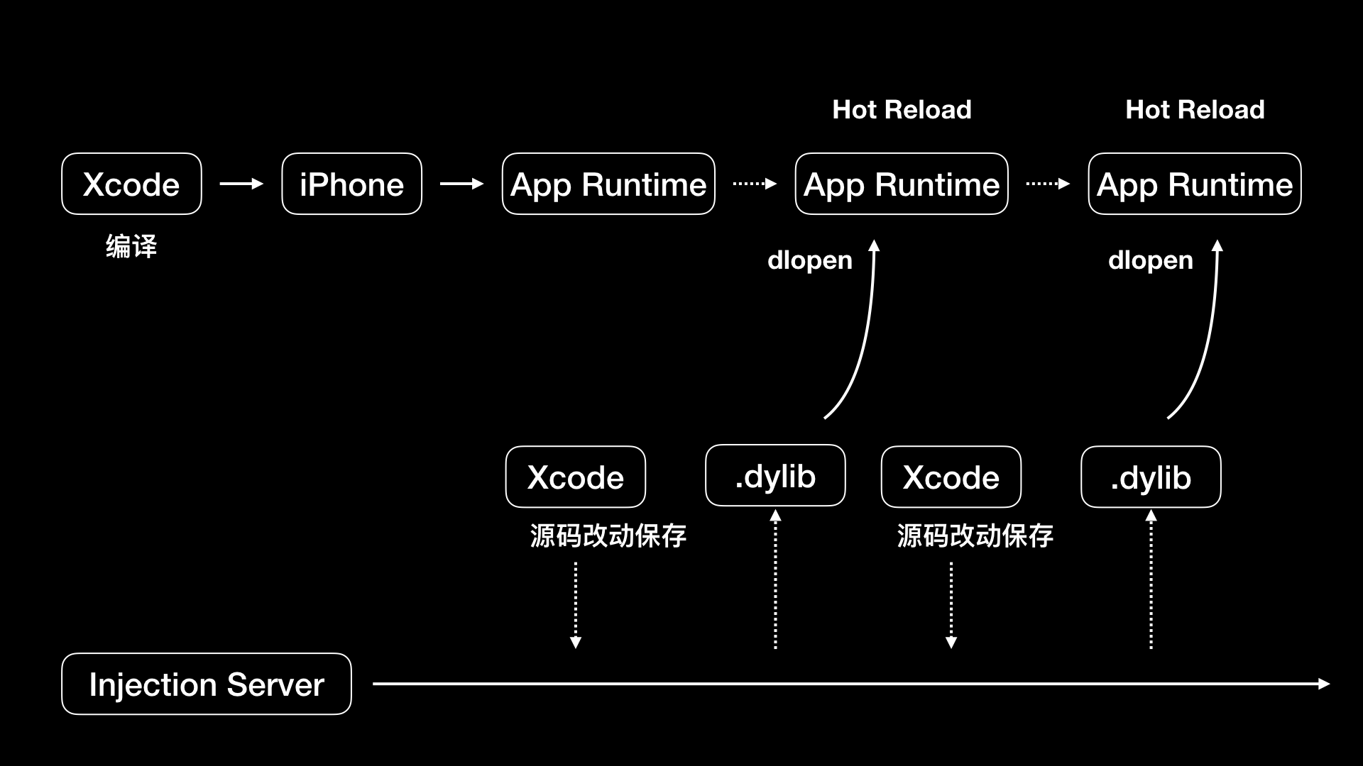 当然了,这只是一个场景,还有更多的场景等待着我们去发掘。比如把 Injection 技术扩展开想,每当你修改了另一个人负责的代码就给那个人发条消息,同时将修改的代码编译、打包成动态库直接让对方看到修改的情况,这样不仅是提高了自己的效率,还提高了整个团队的沟通效率。怎么样?是不是有种想立刻尝试的感觉,心动不如行动,动手写起来吧。