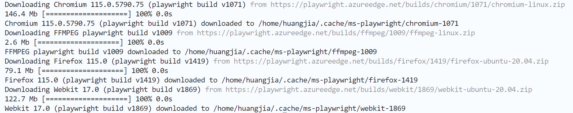 因此我们还需要通过 playwright install 命令来安装三种常用的浏览器工具。