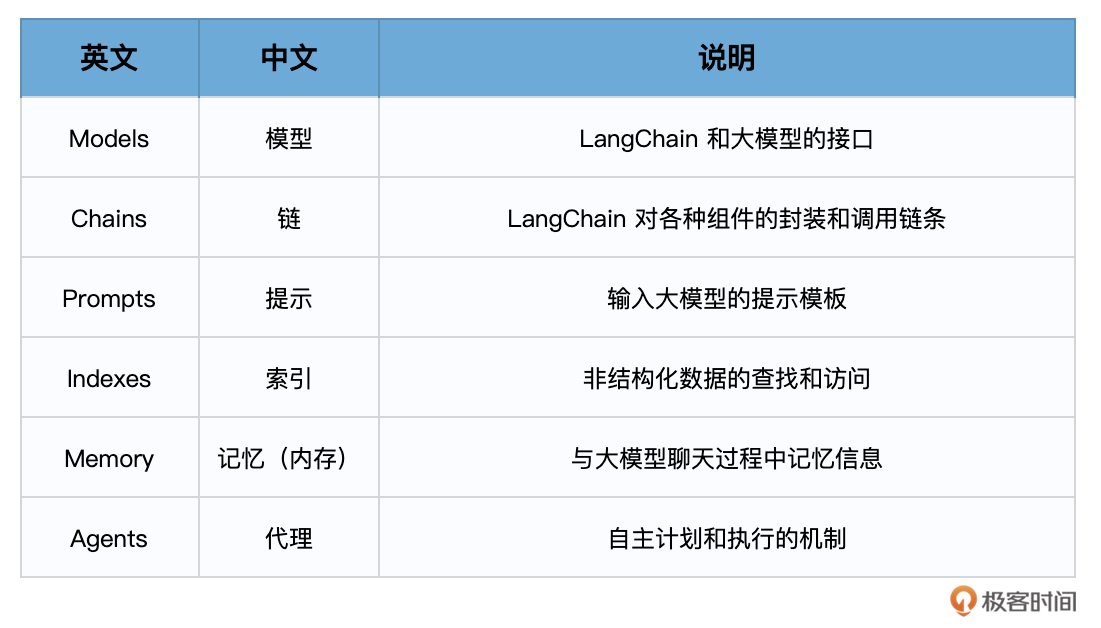 第二个表,是我对LangChain各个组件的一个简明总结。