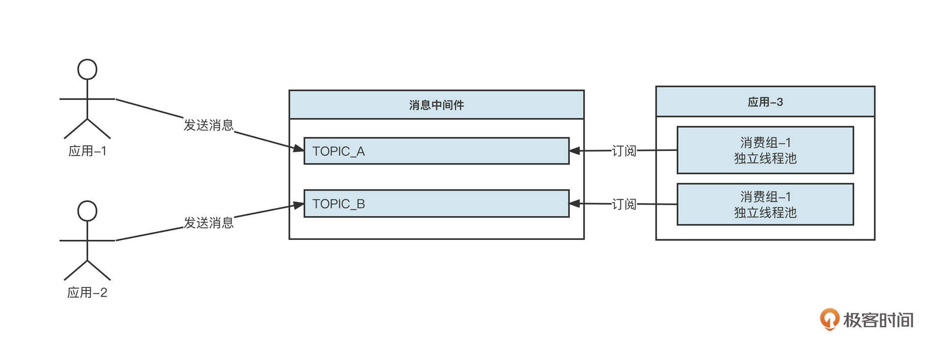 - 应用3不支持蓝绿发布,需要处理完业务逻辑后,向消息中间件中的主题topic-B发送消息。