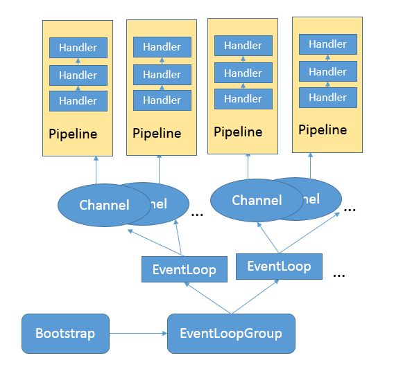 - ServerBootstrap,服务器端程序的入口,这是Netty为简化网络程序配置和关闭等生命周期管理,所引入的Bootstrapping机制。我们通常要做的创建Channel、绑定端口、注册Handler等,都可以通过这个统一的入口,以Fluent API等形式完成,相对简化了API使用。与之相对应, Bootstrap则是Client端的通常入口。