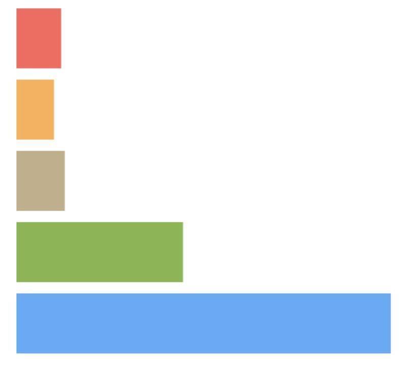 这样,我们就实现了一个简陋的条形图。简陋是因为和QCharts的柱状图相比,它现在只有图形主体部分和一个简单的x坐标轴,缺少y坐标轴、图例、提示信息、辅助网格等信息,不过这些用D3.js也都能创建,我觉得这部分内容,你可以自己试着实现,我就不多说了,如果遇到问题记得在留言区提问。