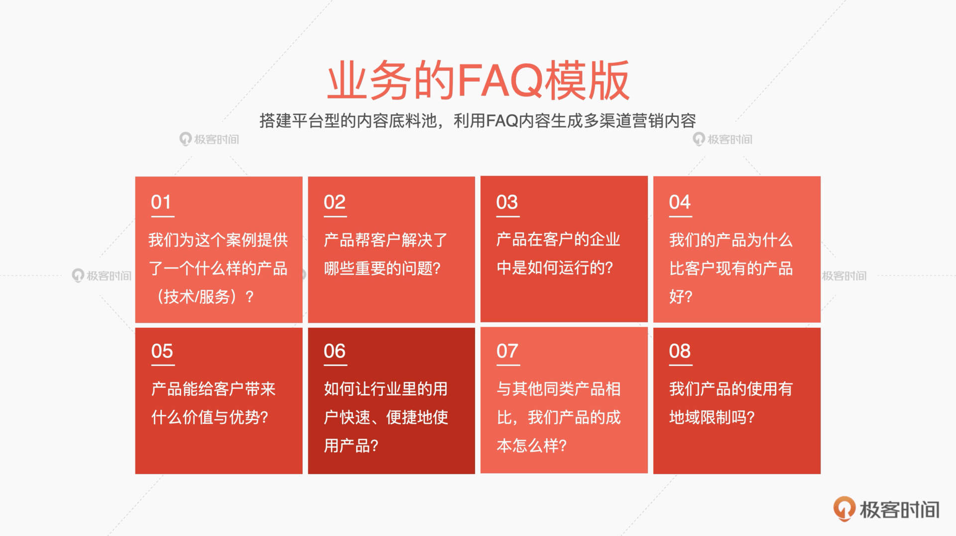 这里,我结合自己这么多年做客户案例的经验,为你总结了三个FAQ模版。