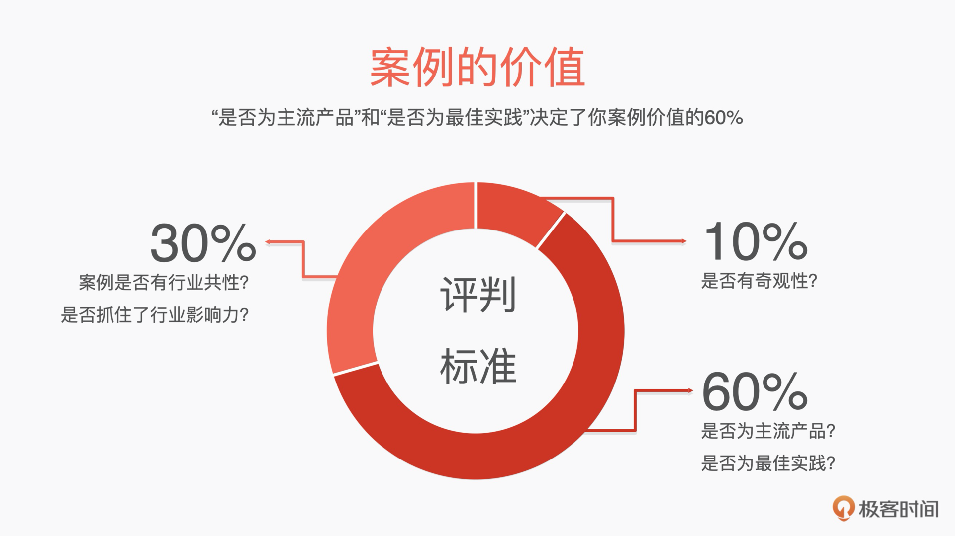 那怎么判断案例是否合适呢?我们首先要有一套自己的评判标准。我就以我常做的云计算行业里的一些简单事例,跟你谈谈如何做案例的选型。
