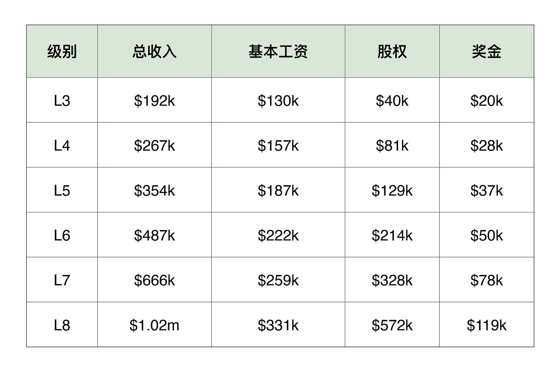 但是,如果你能在一个岗位深耕5年以上,升职到L5的级别,那你的收入就可以达到35.4万美元。毫无疑问,这时你已经是领域内的专家了,如果跳槽去其他公司,收入只会更高。所以在一个有前景的方向上坚持努力,才是真正的利益最大化的选择。