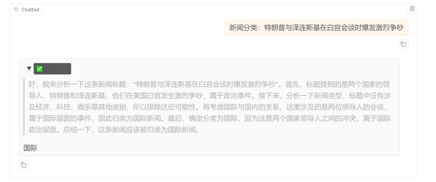 首先加载模型,测试一下原始的 DeepSeek-R1:7B 模型的新闻分类效果。