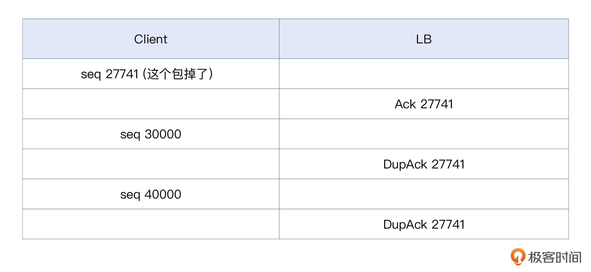 所以,LB就通过DupAck包向客户端宣告:“我这边只确认收到序列号27741之前的数据包。”