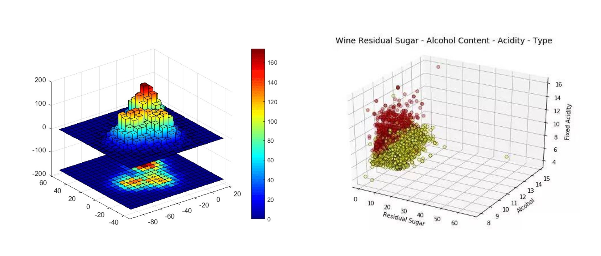 此外,我们还可以用热力图、三维直方图、三维气泡图等等其他的可视化形式来展现多维度的信息。