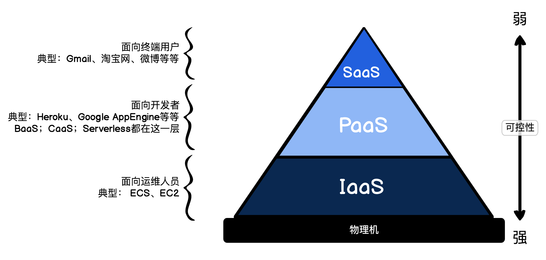 现在云服务商都提供数以百计的各种服务,但大体上我们可以分为以下3类:IaaS、PaaS和SaaS。