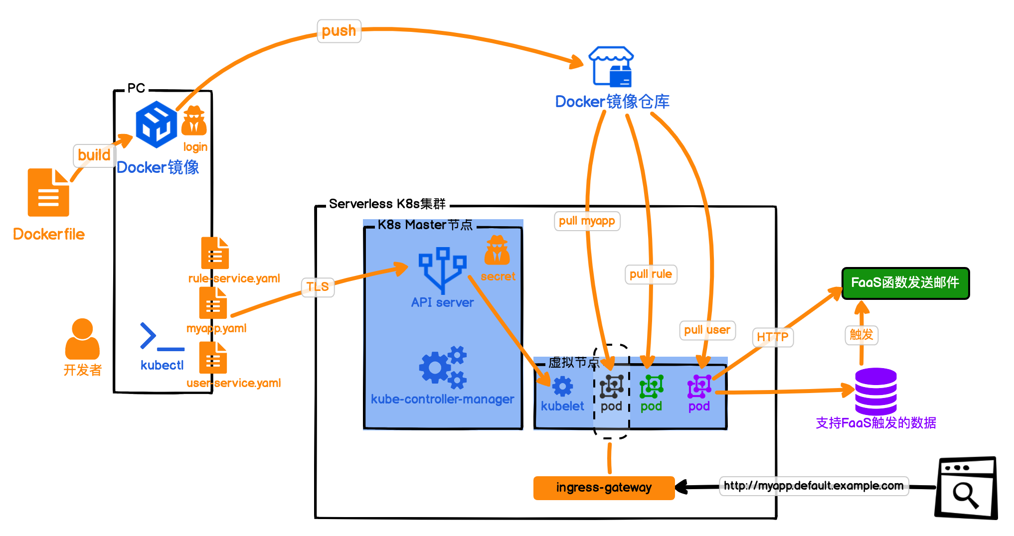这里我需要先解释一下,K8s集群的运维工作对于很多个人开发者来说,是有些重的。我们通常了解基本知识,用kubectl调用K8s集群就可以了。咱们课程里,我是为了让你更好理解Serverless的工作原理,所以才向你介绍Knative在K8s上的搭建和使用过程。