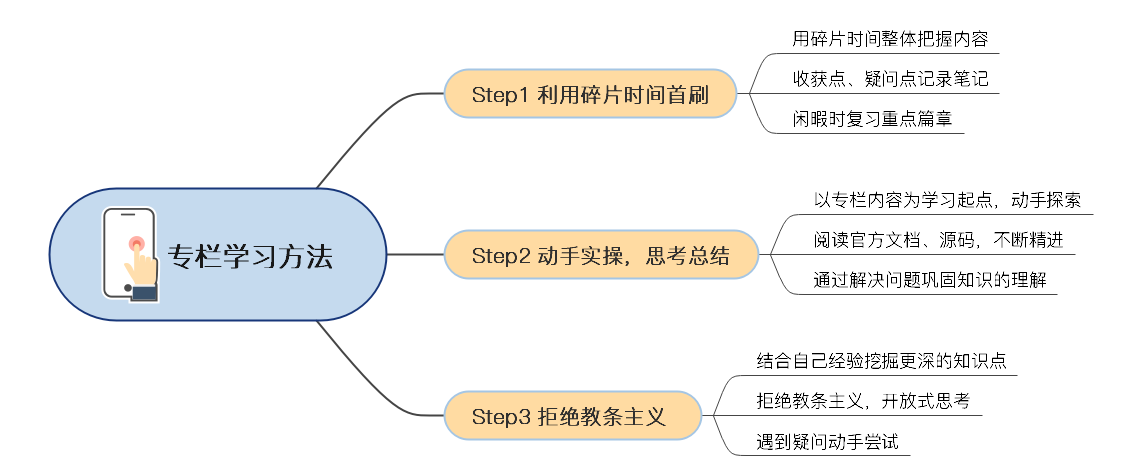 数学家华罗庚说过,他的学习方法很简单,就是“读书要从薄到厚,再从厚到薄”。其实专栏的学习也是同样的道理。在我看来,专栏每篇文章都浓缩着作者历经磨砺后的思考与总结,有些很难一次性消化,所以需要我们在不断实践与思考中领悟。