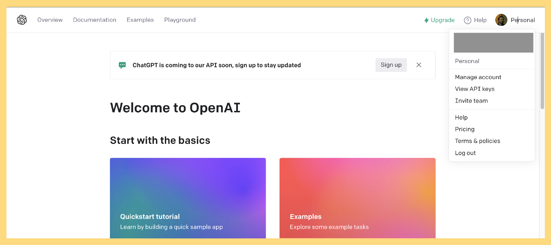 现在OpenAI为所有免费注册的用户都提供了5美元(最早是18美元)的免费使用API的额度,这个额度用来体验API的功能,以及学习这个课程已经够用了。如果你想要进一步将这个API用在实际的产品上,就需要考虑把这个账号升级成付费账号了。