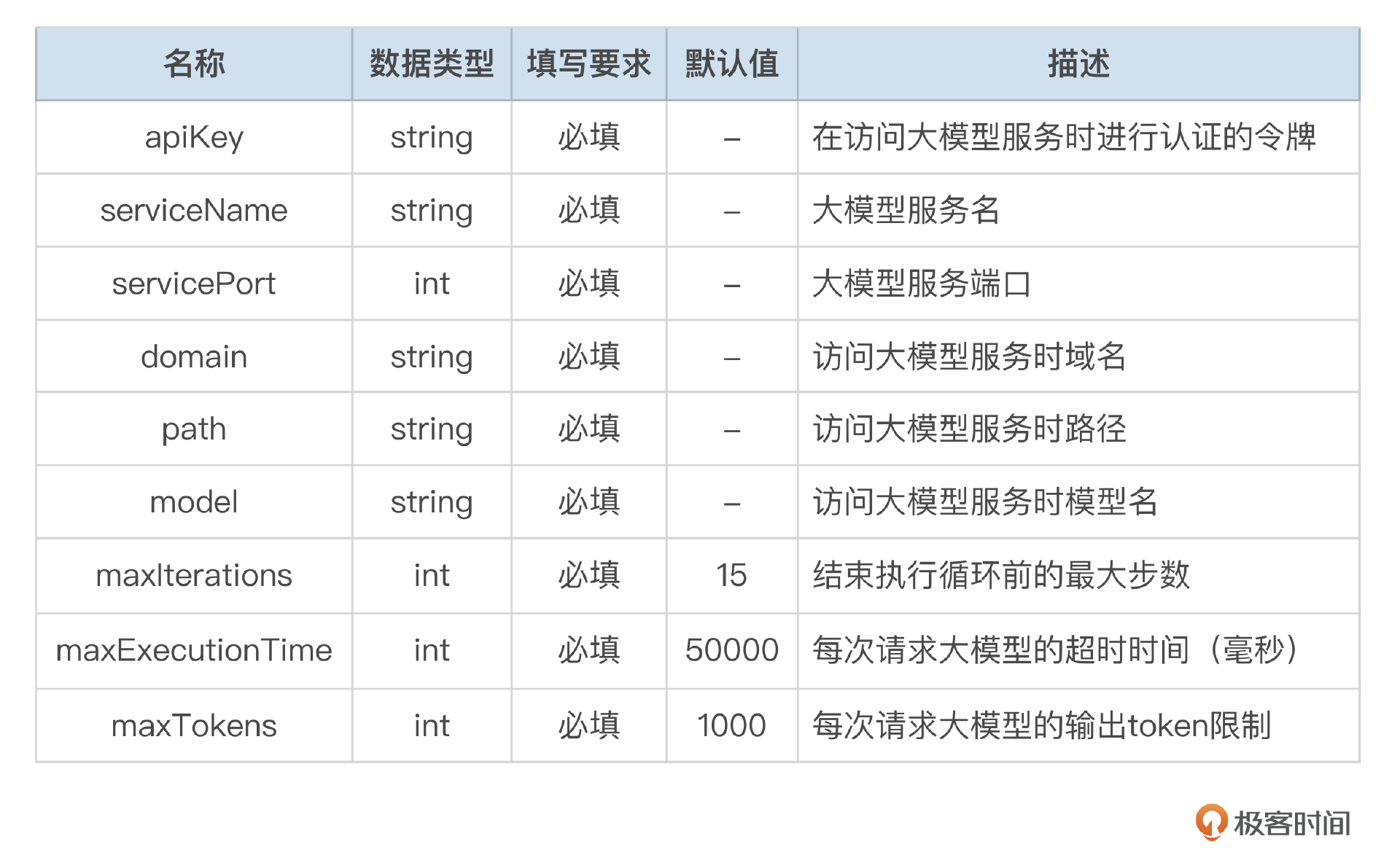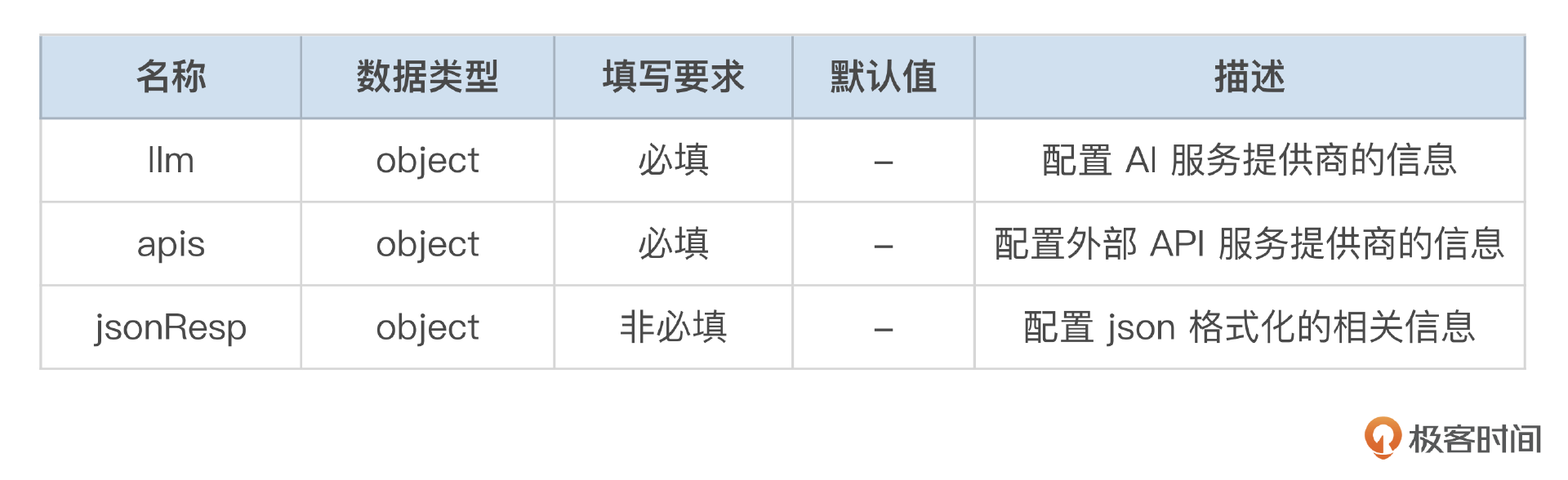 首先来看配置解析。在[第 16 节课]中,我曾设计过 API Agent 的配置,当时由于默认大模型使用的是通义千问,因此设计的结构如下: