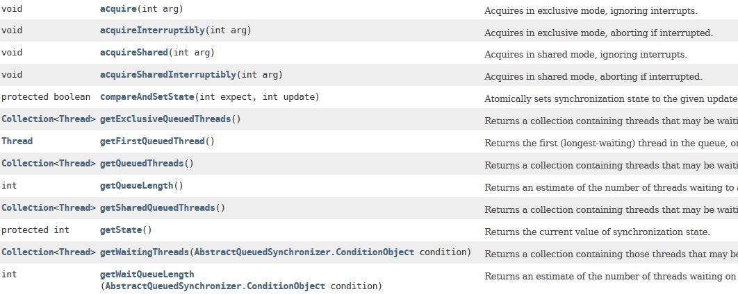 学习AQS,如果上来就去看它的一系列方法(下图所示),很有可能把自己看晕,这种似懂非懂的状态也没有太大的实践意义。