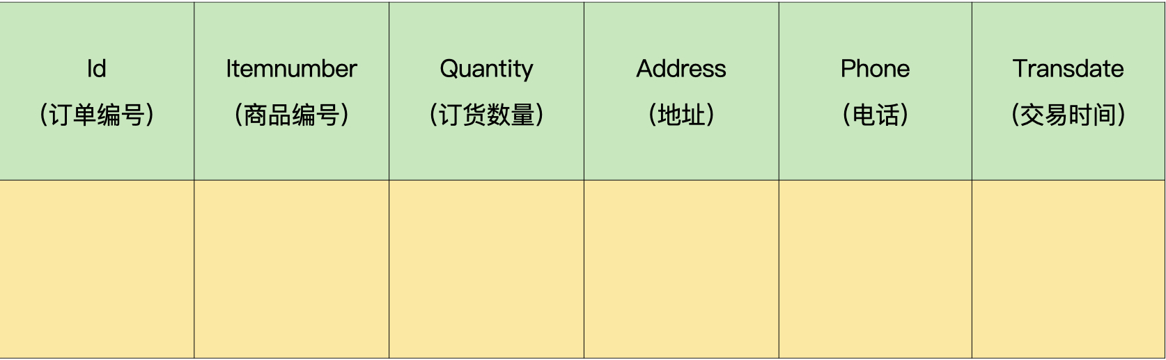 在这个项目中,我们有一个400万条记录的流水数据。为了方便你理解,这里我只保留2个字段,分别是商品编号字段itemnumber和流水唯一编号字段transuniqueid。流水唯一编号用于在系统中唯一标识一条流水。