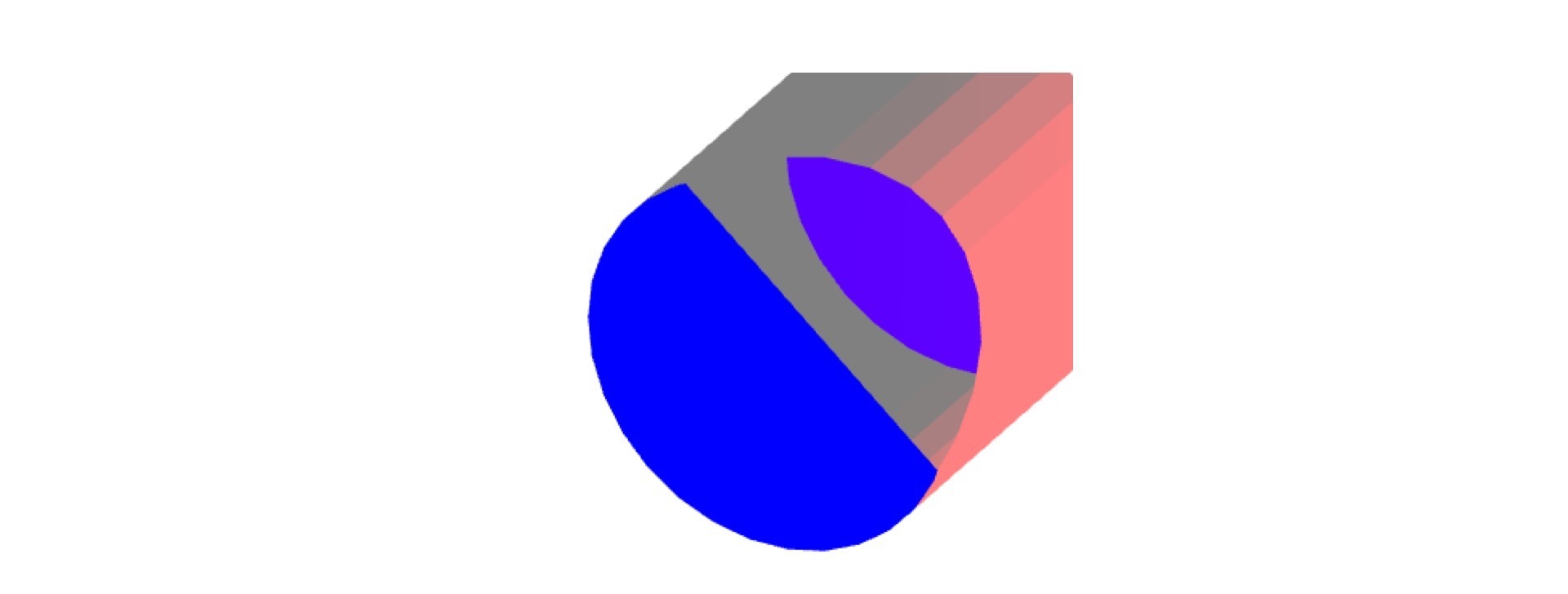 举个例子,如果我们修改模型矩阵,让圆柱体沿x、y轴平移,向右上方各平移0.5,那么圆柱中x、y值大于1的部分都会被剪裁掉,因为这些部分已经超过了Canvas边缘。操作代码和最终效果如下: