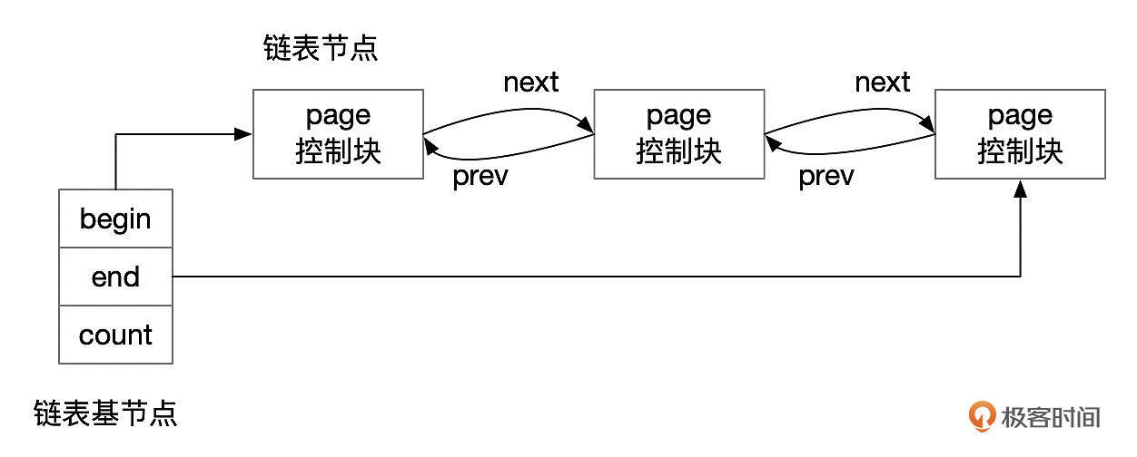 这些链表在结构上都是一样的,由链表基节点和链表节点组成。链表基节点记录了链表的头部和尾部,因此访问链表开始和结尾处的节点很快。每个链表节点通过prev和next指针分别指向前后相邻的节点,通过这些指针可以双向遍历整个链表。当然,访问这些链表时,都需要先获取相关的互斥锁。