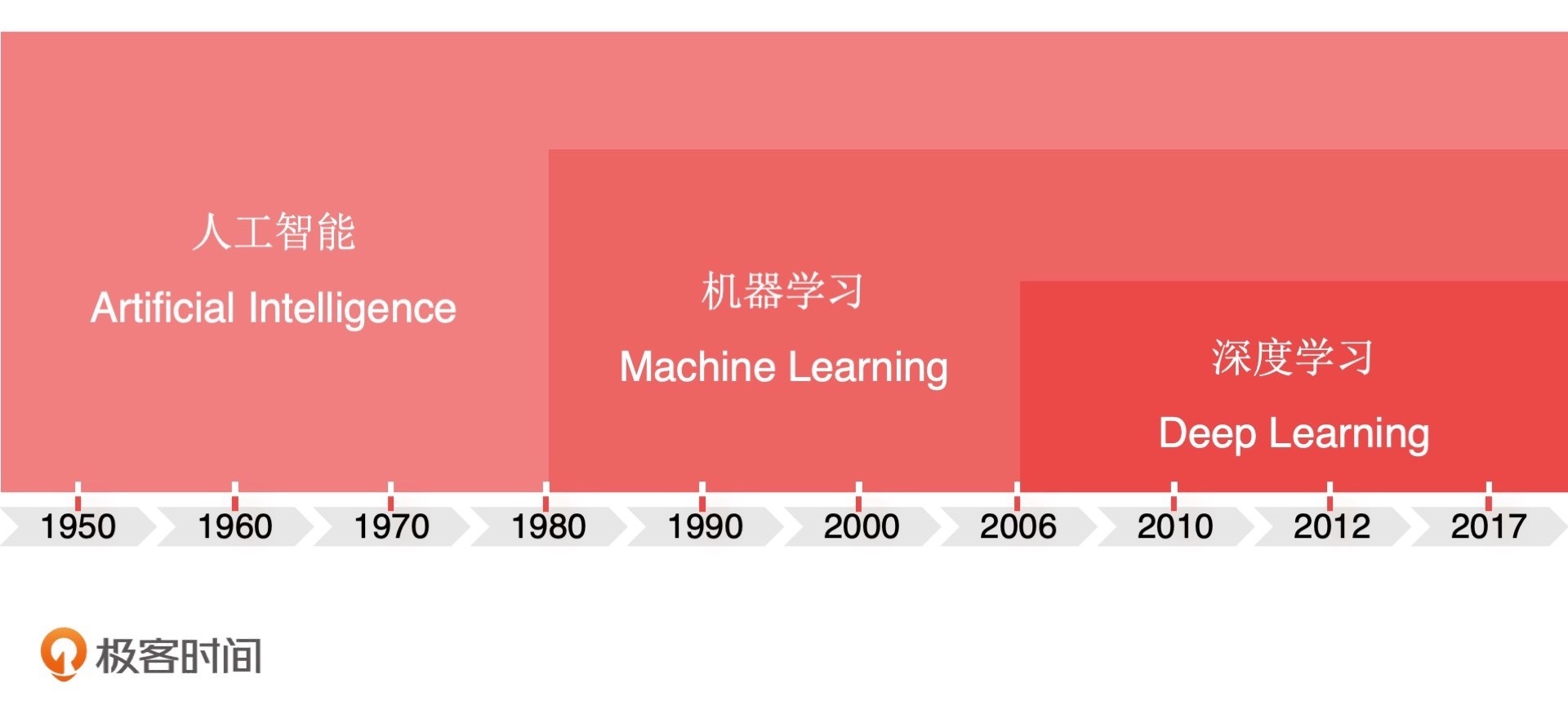 理解了什么是人工智能和它的边界,我们再来看看人工智能领域的两个重点概念,机器学习和深度学习。这两个关键词时常出现在人工智能相关的新闻中,但还是有很多人不清楚这两者是什么,以及它们和人工智能是什么关系,甚至还有人把它们混为一谈。所以,我希望在正式开始咱们后面的学习之前,先带你扫除这些基础障碍。