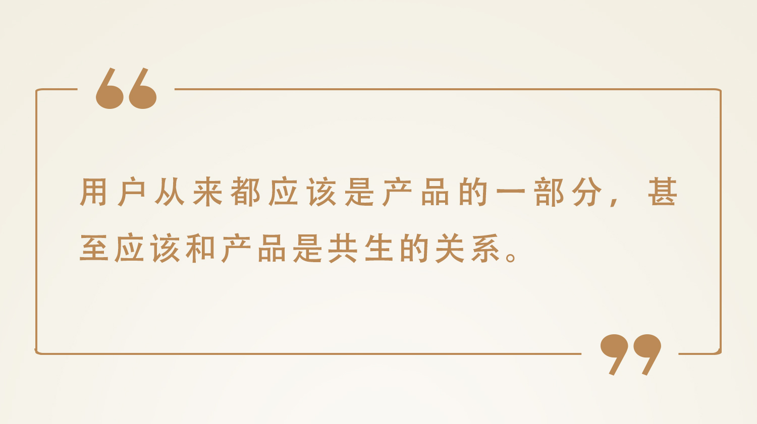 我读后很有感触,用户从来都应该是产品的一部分,甚至应该和产品是共生的关系。有时候我们看到产品,都可以猜出核心用户的样子。其实,任何产品和服务,都是在和用户一次又一次的互动过程里,变得成熟且高效。