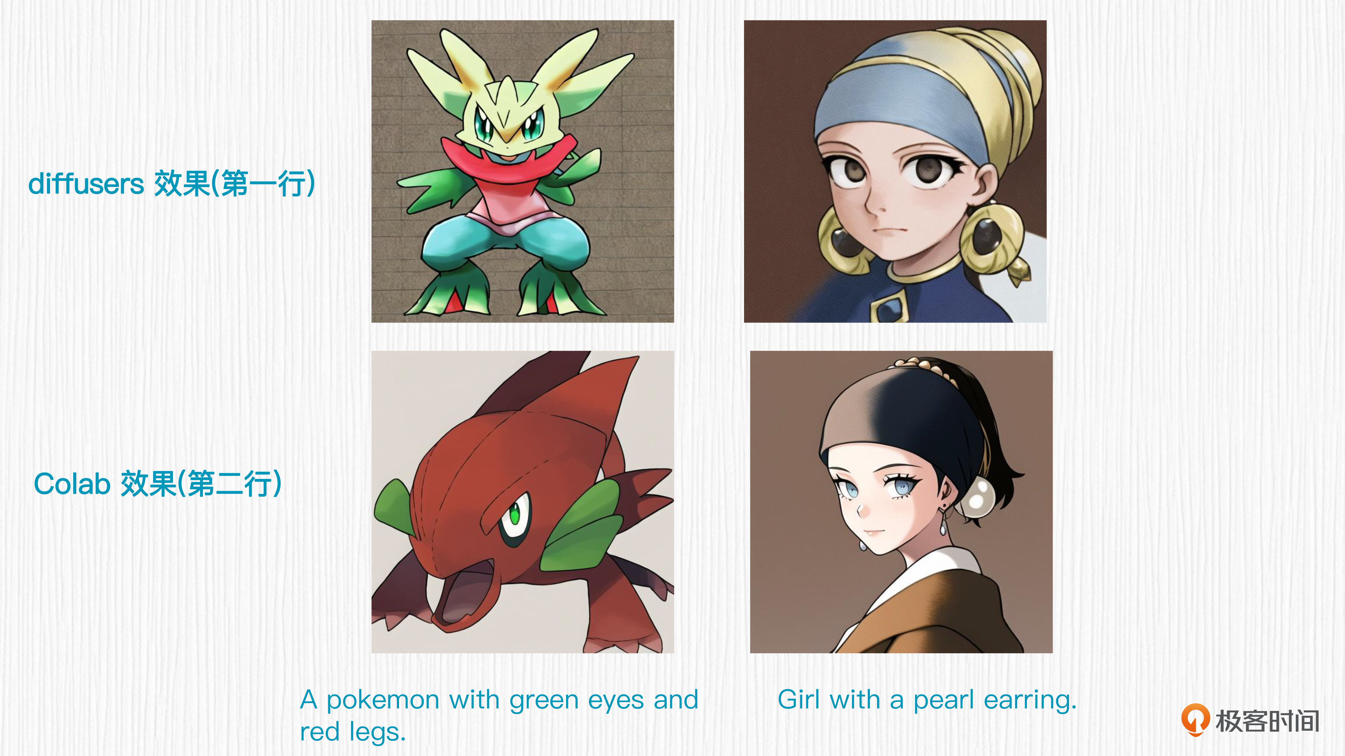 耐心等待LoRA训练完成后,我们便可以看到LoRA模型的生成效果。以宝可梦的效果为例,能直观的感受到,在相同的测试prompt下,我们Colab的生成效果要优于使用diffusers代码仓的训练效果。