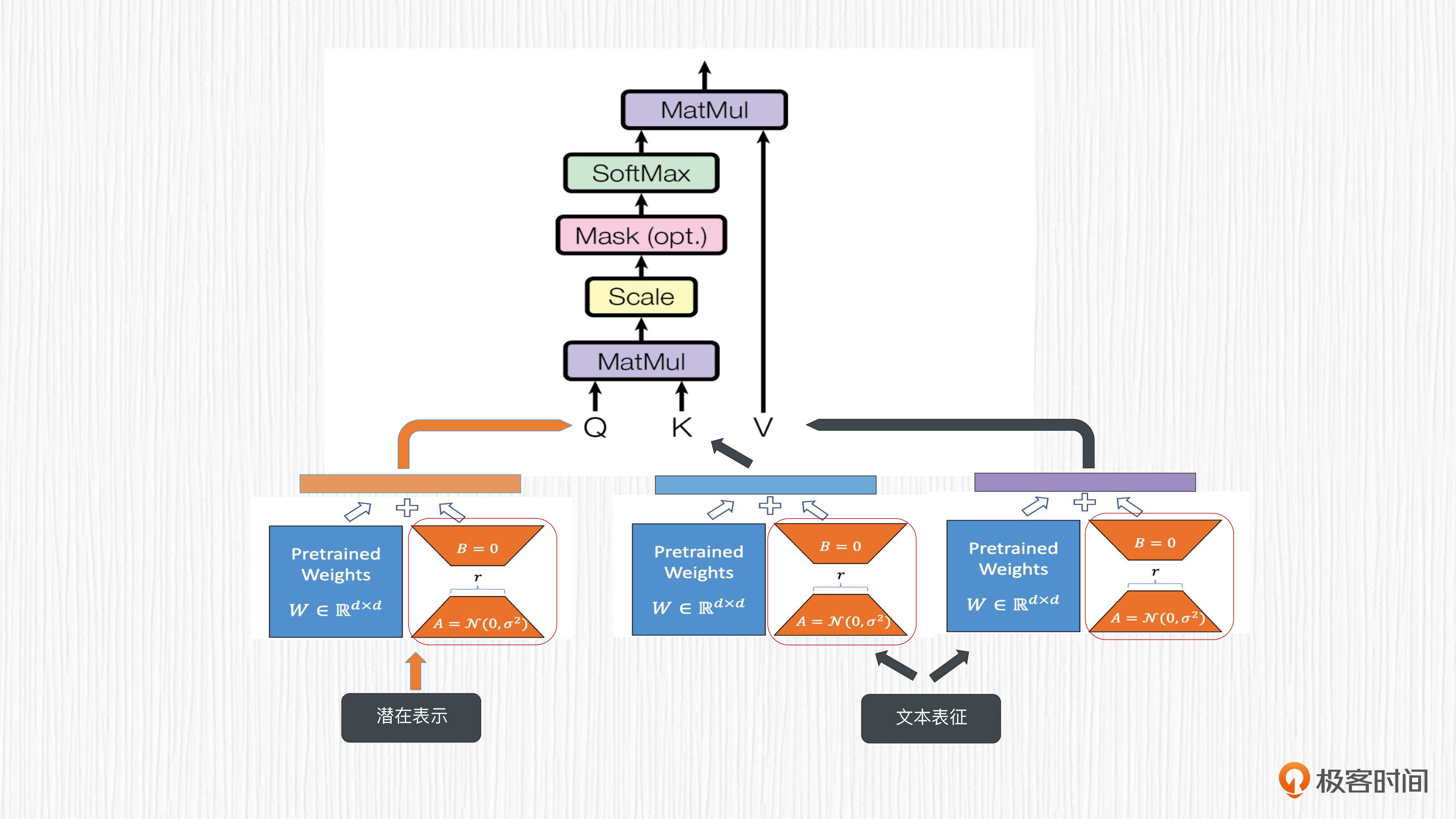 下面图片展示的就是这个过程,红框中的部分就是我们要训练的LoRA模型权重。