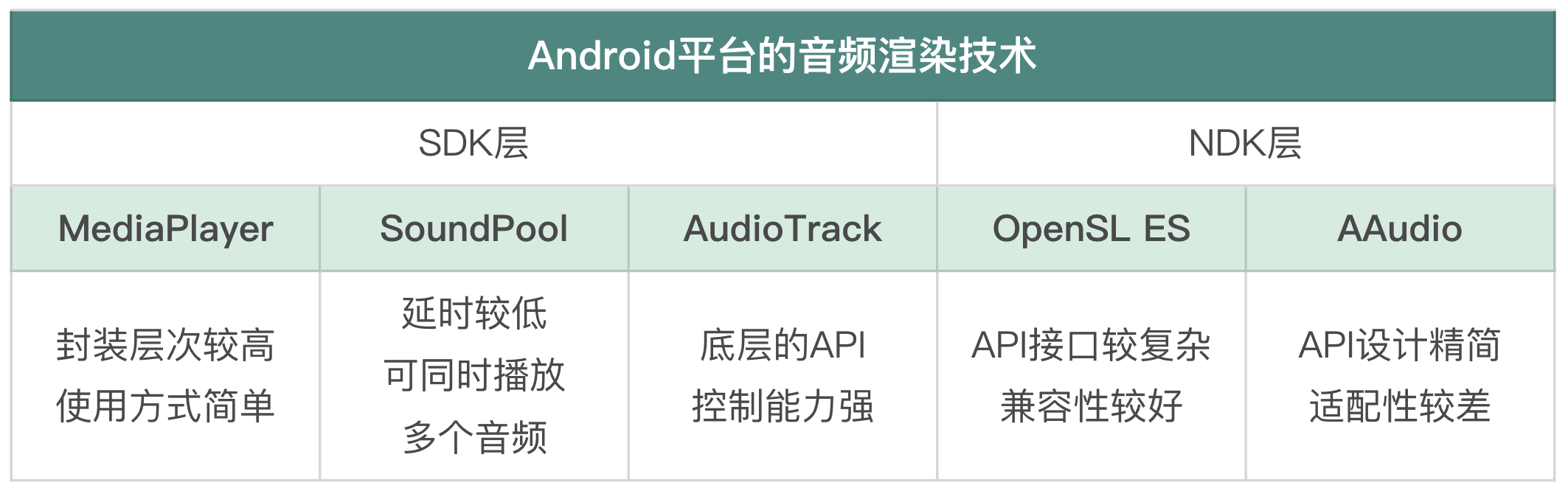 下面我们来看音频输出模块,我们知道音频渲染的技术选型有多种,让我们简单回顾一下。
