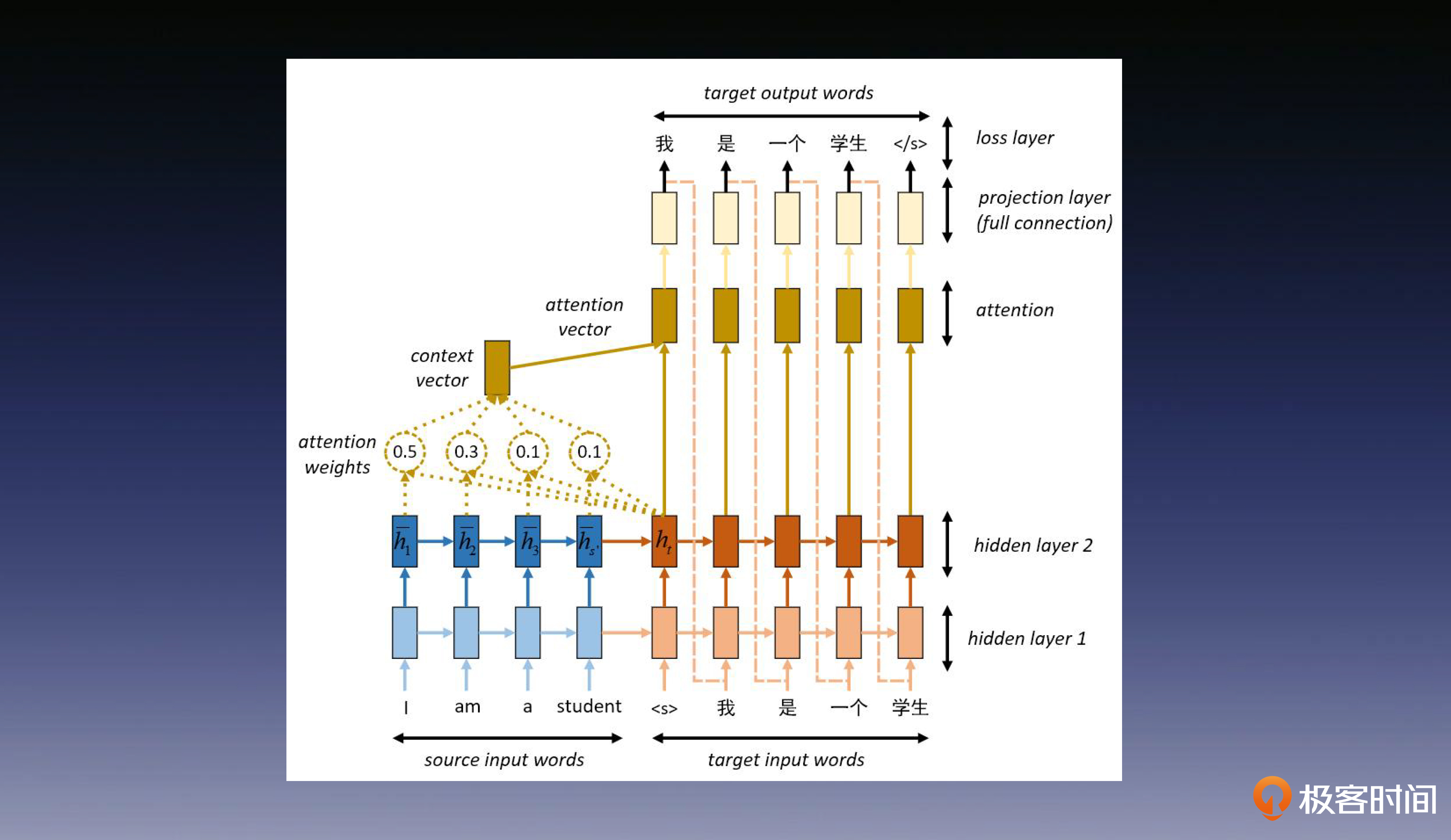 如果你认真学习了前面的课程,理解编、解码器的工作原理将非常轻松。我们以机器翻译为例来带你梳理一下。