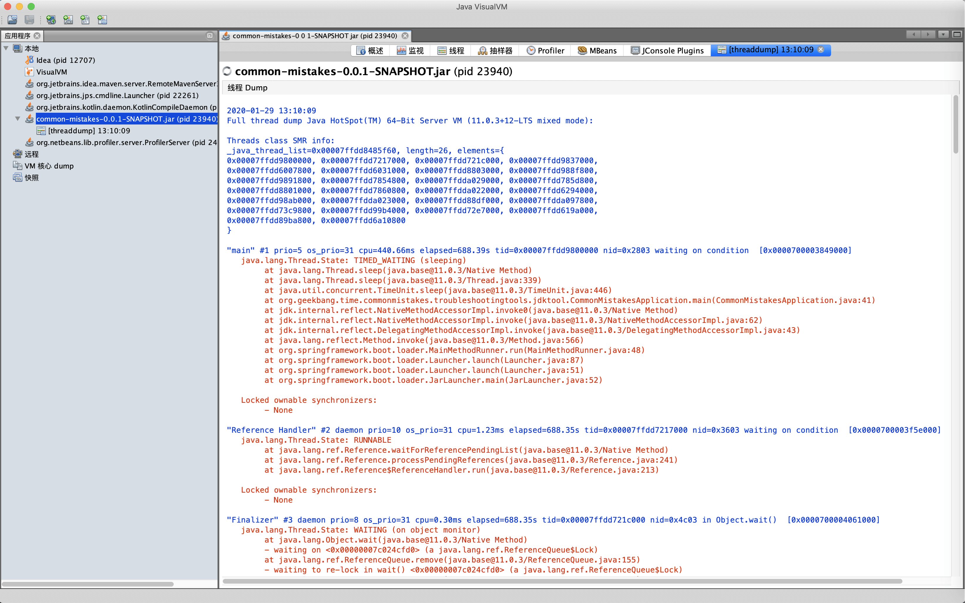 1 2 3 4 5 6 7 8 <plugin> <groupId>org.springframework.boot</groupId> <artifactId>spring-boot-maven-plugin</artifactId> <configuration> <mainClass>org.geekbang.time.commonmistakes.troubleshootingtools.jdktool.CommonMistakesApplication </mainClass> </configuration> </plugin>