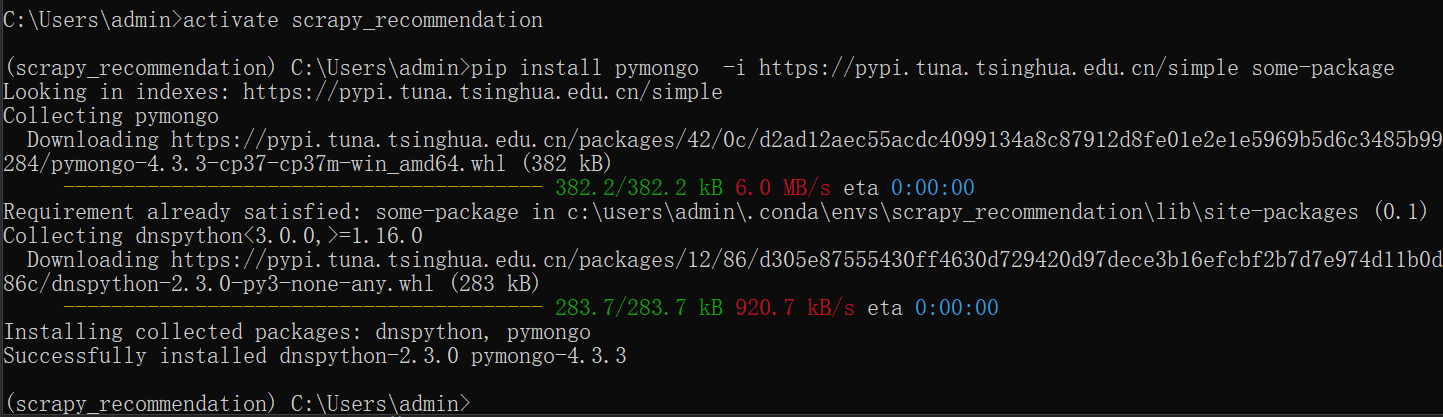 紧接着,我们使用下面的命令来安装pymongo。
