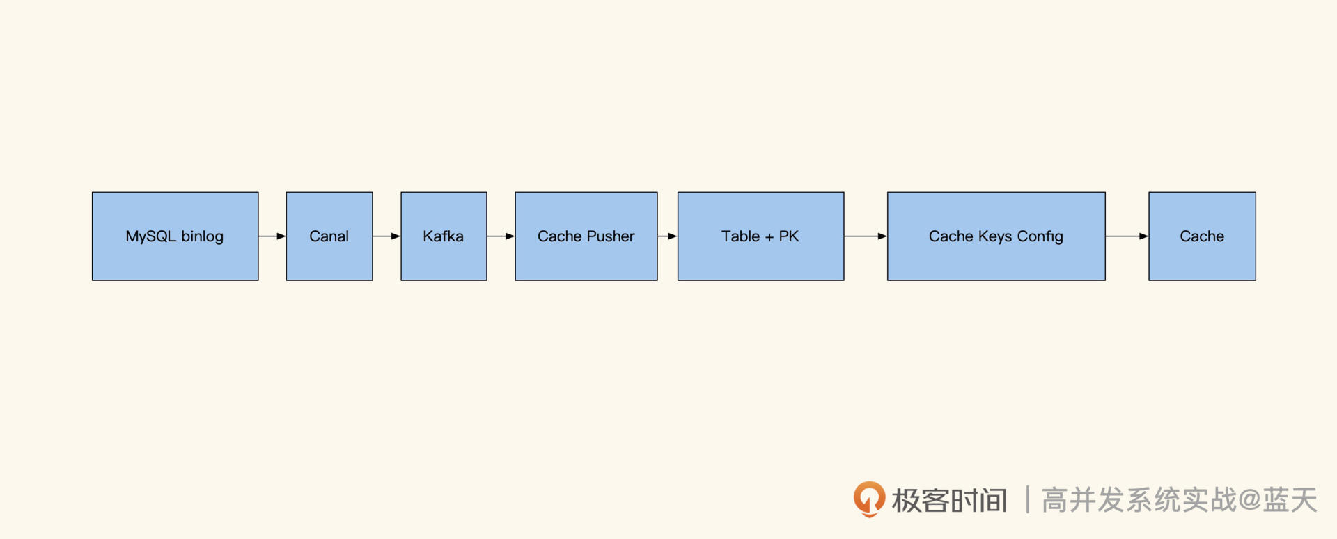 所以,数据库要是扛不住平时的流量,我们就不能使用临时缓存的方式去设计缓存系统,只能用长期缓存这种方式来实现热点缓存,以此避免缓存穿透打沉数据库的问题。不过,要想实现长期缓存,就需要我们人工做更多的事情来保持缓存和数据表数据的一致性。