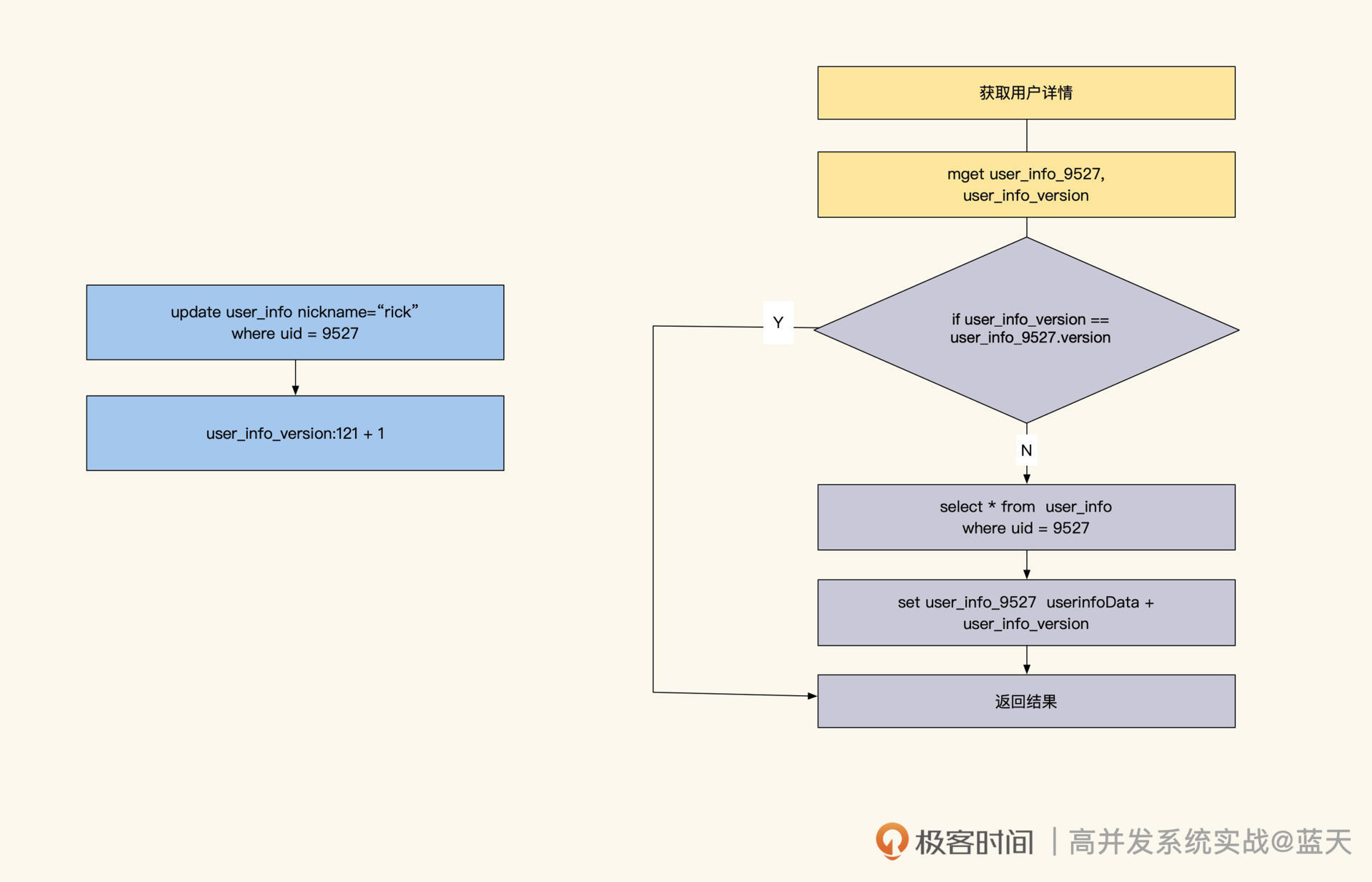而对于用户中心的业务来说,这个比例会更大一些,毕竟用户不会频繁地更新自己的信息和密码,所以这种读多写少的场景特别适合做读取缓存。通过缓存可以大大降低系统数据层的查询压力,拥有更好的并发查询性能。但是,使用缓存后往往会碰到更新不同步的问题,下面我们具体看一看。