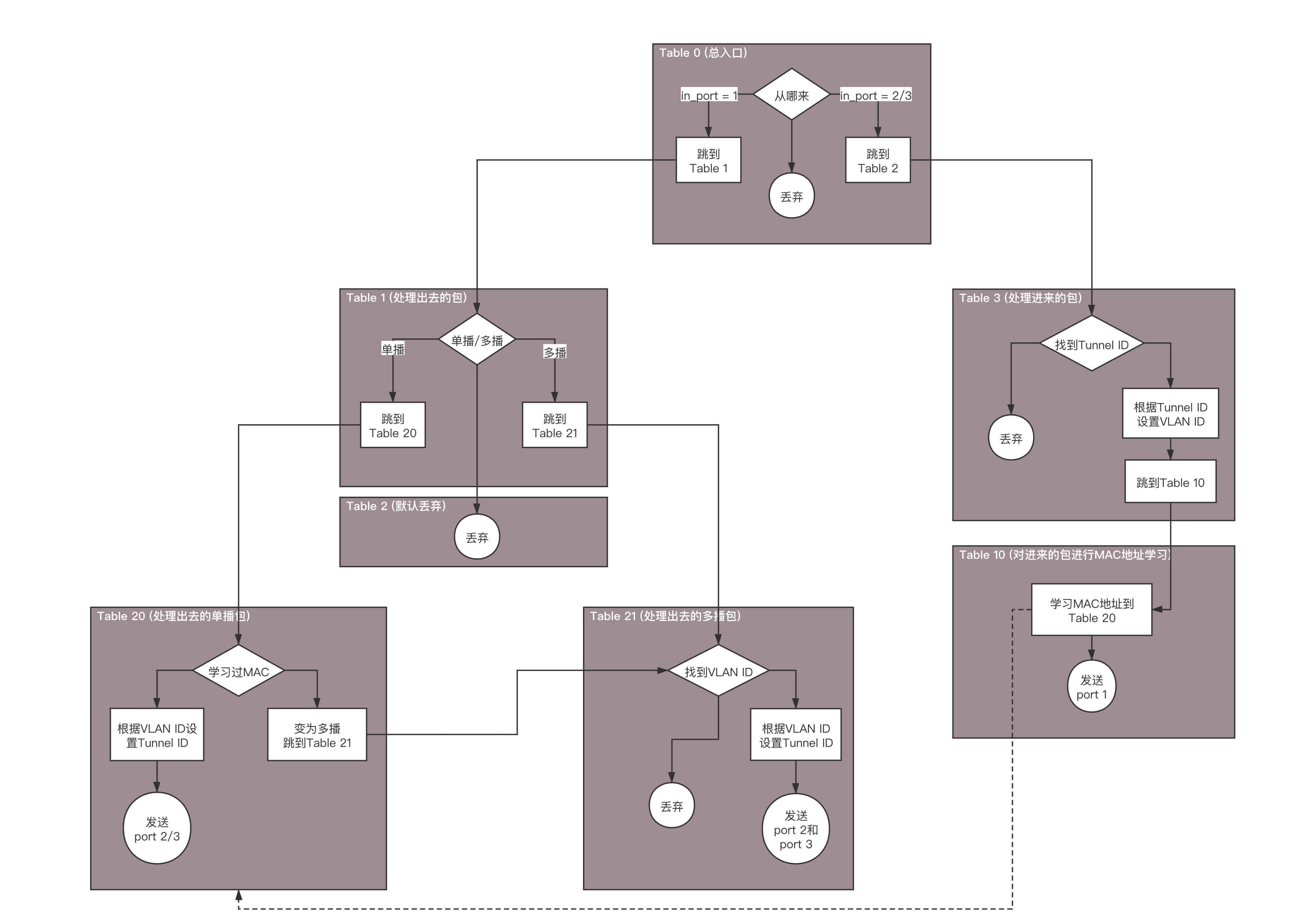 Table 10是用来学习MAC地址的,学习的结果放在Table 20里面。Table20被称为MAC learning table。
