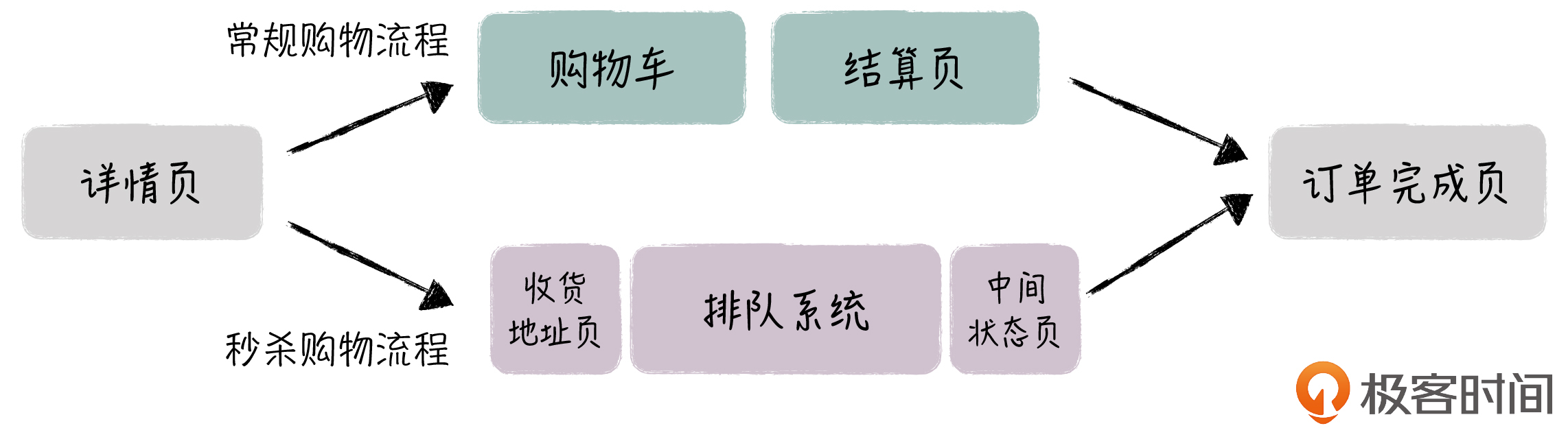 在这里,我们在系统设计上,可以很好地同时支持秒杀流程和常规购物流程。