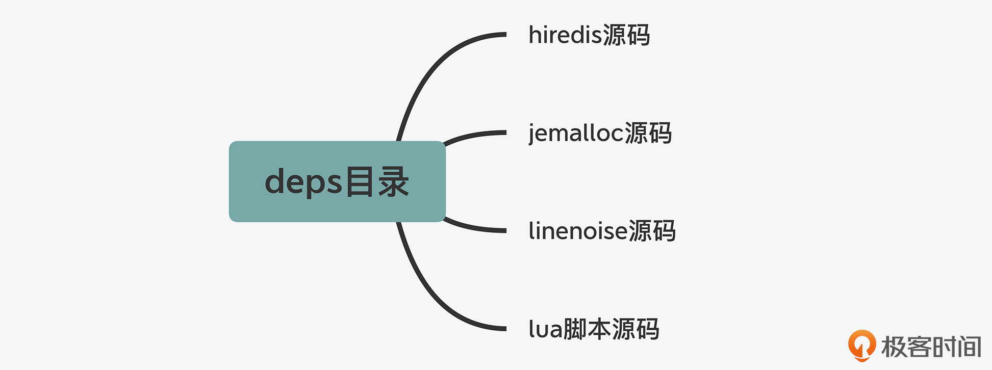 我举个简单的例子,glibc库中实现的内存分配器的性能就不是很高,它的内存碎片化情况也比较严重。因此为了避免对系统性能产生影响,Redis使用了jemalloc库替换了glibc库的内存分配器。可是,jemalloc库本身又不属于Redis系统自身的功能,把它和Redis功能源码放在一个目录下并不合适,所以,Redis使用了专门的deps目录来保存这部分代码。