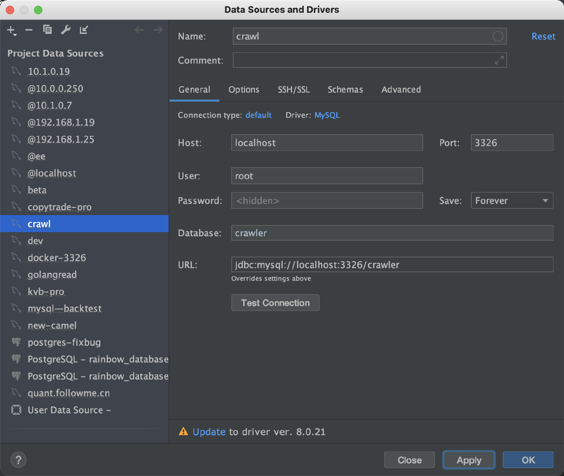 运行代码后,数据将存储到MySQL表的douban_book_list中。我们可以用多种与数据库交互的工具查看表中的数据。例如,我们这里使用的是DataGrip,使用地址、密码、和对应的Crawler Database,就可以连接到对应的数据库。