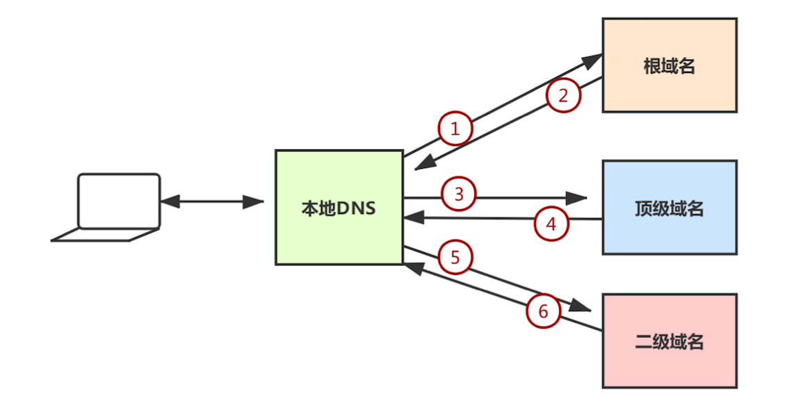 - 步骤4:如果顶级域名也不知道要查询域名的IP地址的话,它会给本地 DNS 返回二级域名服务地址。