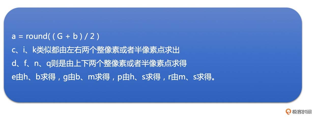 其中,红色点为1/4像素点,具体计算方法如下: