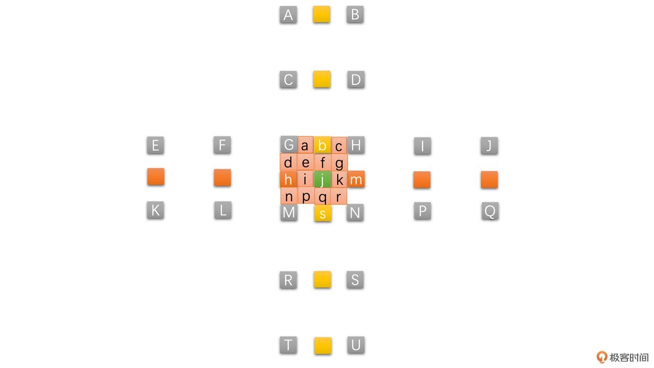其中,灰色为整像素点,橙色为水平半像素,黄色为垂直半像素点,绿色为中心半像素点。